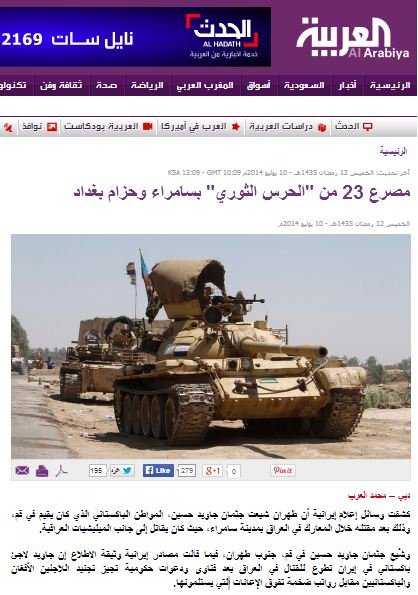 ونشرت صحيفة "الزمان العراقية" من جهتها، خبراً مفاده مقتل 23 عنصراً من الحرس الثوري الإيراني، بينهم أربعة ضباط في تفجير ومعارك شمال سامراء وغرب بغداد.