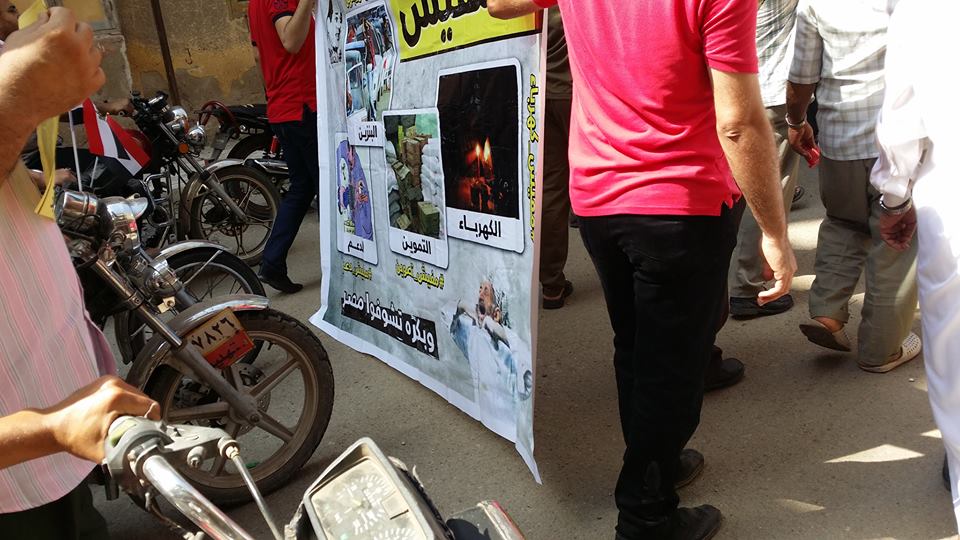 ورفع المشاركون شارات رابعة العدوية وصور الرئيس محمد مرسي ، ولافتات تندد برفع الدعم عن الكهرباء والمحروقات والمواد التموينية ،وسط هتافات تطالب بخروج المعتقلين والقصاص لدماء الشهداء.