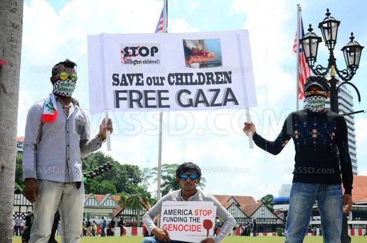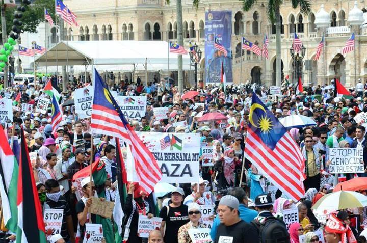‫أقيمت تظاهرة داعمة لـ"غزة" في ساحة الاستقلال بالعاصمة الماليزية "كوالالمبور"، حيث شارك عدد كبير من سكان المدينة في التظاهرة، رافعين أعلام فلسطين، ولافتات منددة بالعدوان الصهيوني على قطاع غزة، مطالبين المجتمع الدولي باتخاذ خطوات جادة لإنقاذ أطفال القطاع.