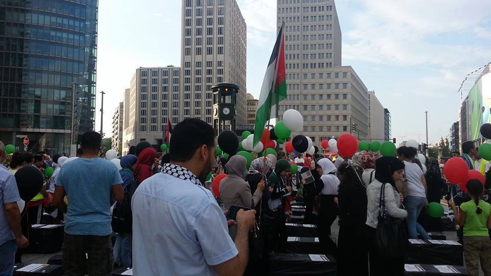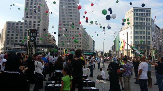 حيث شاركوا في وقفة صامتة حداداً علي أرواح شهداء "غزة"، كما حملوا أعلام فلسطين، والبلالين بألوان علم فلسطين، وتأتي تلك الفعالية لليوم الرابع علي التوالي في العاصمة الألمانية .