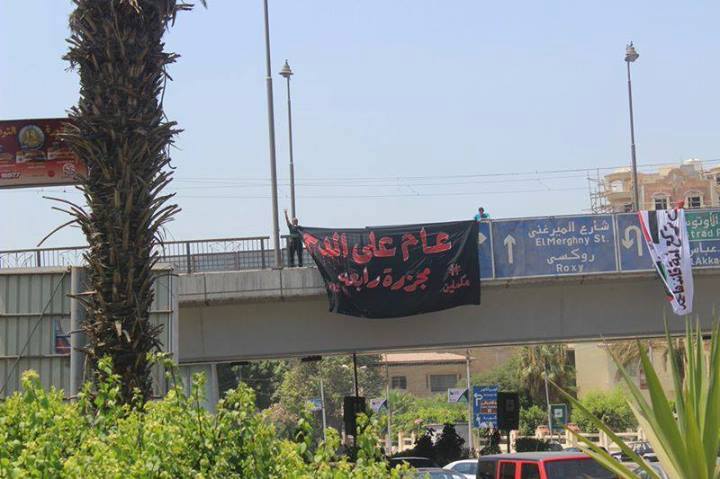 نظم ثوار مدينة نصر، اليوم الجمعة، مسيرة مناهضة للانقلاب، انطلقت من أمام مبنى المخابرات الحربية بمصر الجديدة، رفع المشاركون أعلام "مصر"، والأعلام "الفلسطينية"، وكذلك شارات "رابعة" .