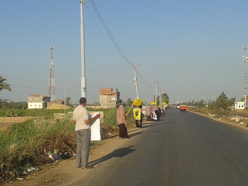 نظمت حركة "شباب ضد الانقلاب" بـ"دمياط" سلسلة بشرية في قرية "أم الرضا"، إذ رفع المشاركون أعلام سوريا ومصر، وكذلك الأعلام الفلسطينية، وشارات رابعة، مرددين هتاف: "غزة وسوريا ورابعة اخوات.. مش ناسيين حق اللي مات".