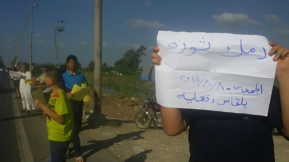 كما نظمت حركة "شباب ضد الانقلاب"، بالاشتراك مع "جنيات ثورية" سلسلة بشرية، عصر الجمعة، على طريق "المنصورة – أجا"، طالب المشاركون فيها بمحاكمة قادة الانقلاب، والقصاص لدماء الشهداء.