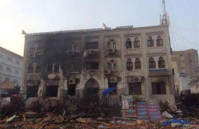 صور | حرق مستشفى رابعة .. الانقلاب يسعى لإخفاء مذبحته
