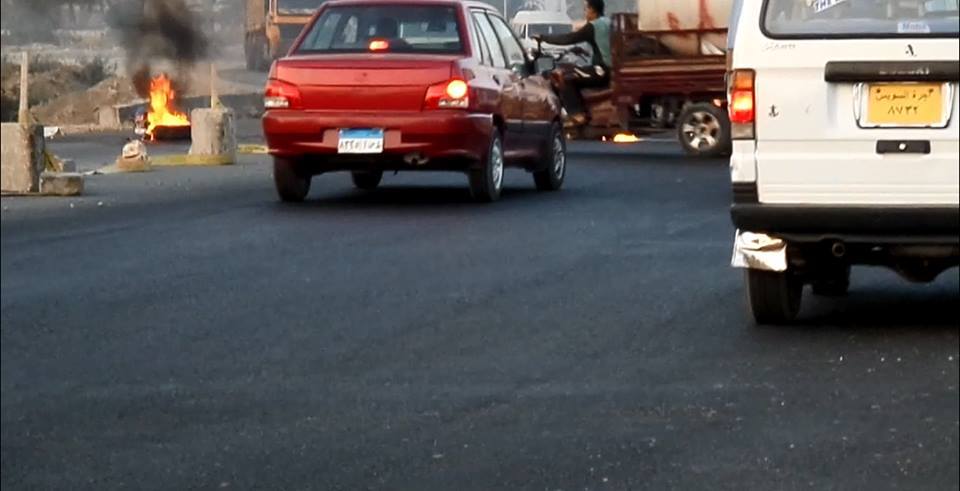 قام مجهولون، ظهر اليوم الجمعة، بقطع طريق "صلاح نسيم" في "السويس"، والمؤدي إلى المنطقة الصناعية بشمال السويس "الأدبية عتاقة – شمال غرب خليج السويس" من الاتجاهين، مستخدمين إطارات السيارات المحترقة، ما أدي إلى تكدس السيارات، ومنع العاملين بالمناطق الصناعية من الوصول لمكان أعمالهم، كما منعت الشاحنات من الوصول إلي ميناء العين السخنة.