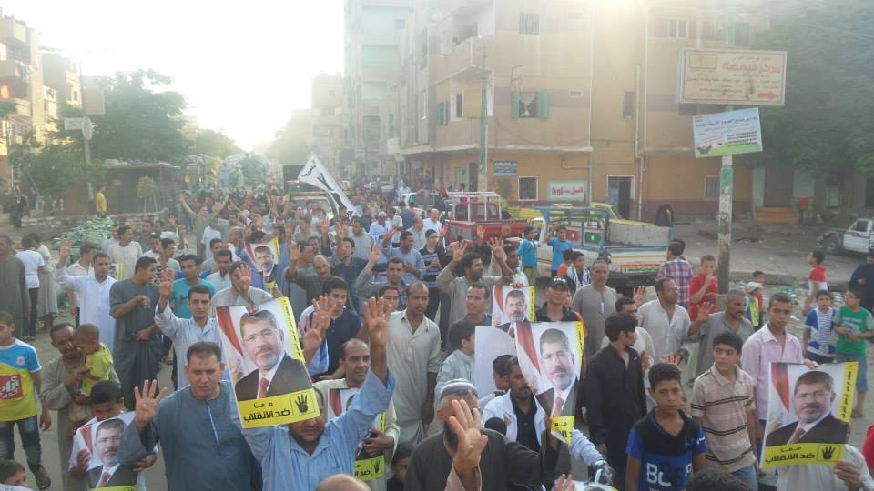 نظم عدد من رافضي الانقلاب في محافظة "الجيزة"، مسيرة بـ"المنصورية" شمال المحافظة، رفع المشاركون خلالها صورًا للرئيس الشرعي الدكتور "محمد مرسي"، وكذلك شارات "رابعة"، وأعلام "مصر".
