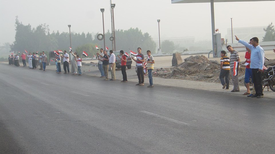 نظم التحالف الوطنى لدعم الشرعية بمركز أجا بمحافظة الدقهلية، سلسلة بشرية، على طريق (القاهرة – أجا) السريع، ورفع المشاركون إشارات رابعة العدوية وصور الرئيس محمد مرسى.