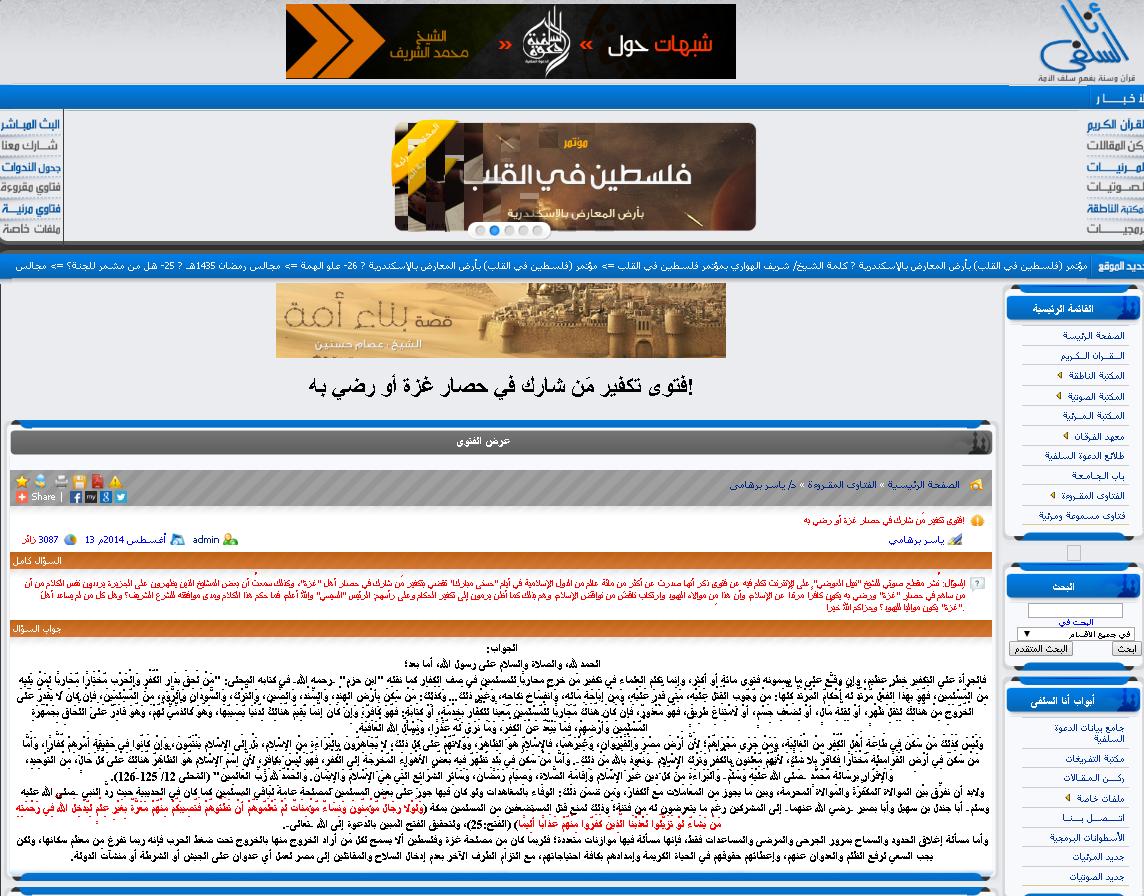وقال برهامي ب"قسم الفتاوى" بالموقع في أحدث فتوى له: "أما مسألة إغلاق الحدود والسماح بمرور الجرحى والمرضى والمساعدات فقط، فإنها مسألة فيها موازنات متعددة؛ فلربما كان مِن مصلحة غزة وفلسطين ألا يسمح لكل مَن أراد الخروج منها بالخروج تحت ضغط الحرب فإنه ربما تفرغ مِن معظم سكانها".