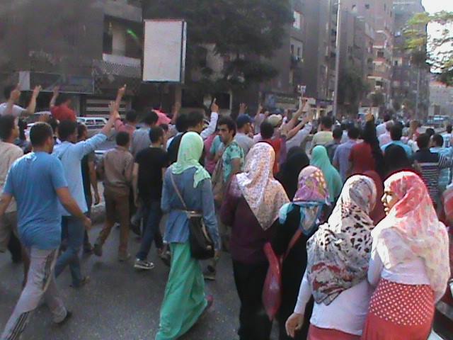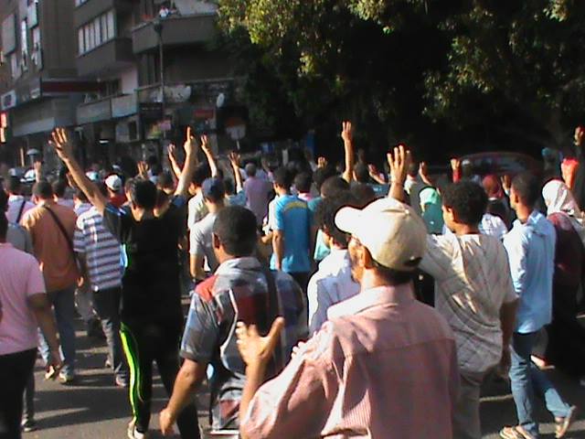 خرج أهالي "المهندسين"، بـ"الجيزة"، في مسيرة حاشدة، منطلقة إلى الطريق الدائري، وسط هتافات "ارفع رابعة وخليك فاكر .. اللي قتلوا إخواتنا عساكر"، "مش ناسيين حق الشهيد .. ثورة تاني من جديد".