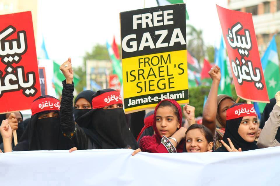 دعت "الجماعة الإسلامية"، في "باكستان"، إلى تظاهرة، نصرةً لغزة وفلسطين، خرج الآلاف مشاركةً بالتظاهرة، حيث حملوا أعلام "فلسطين"، مؤكدين رفضهم للعدوان الصهيوني على قطاع "غزة".
