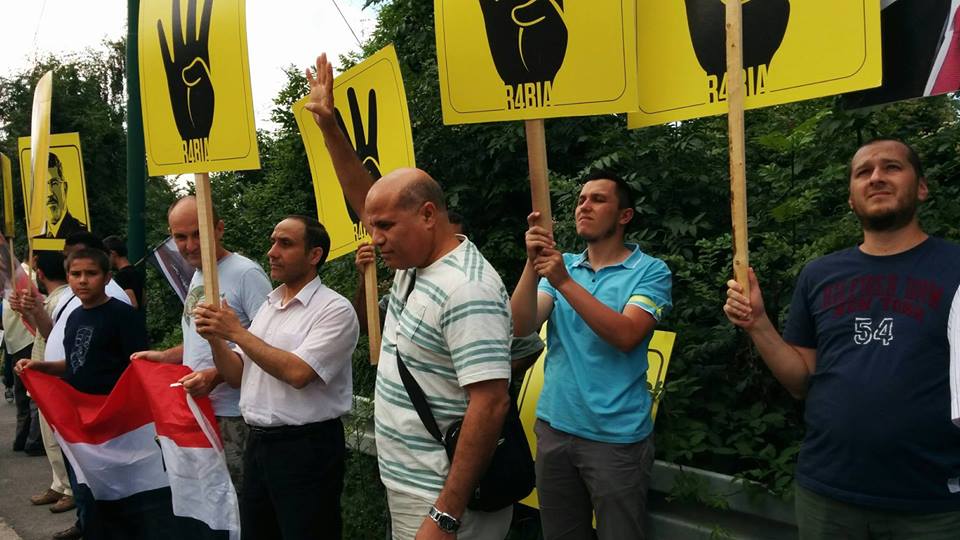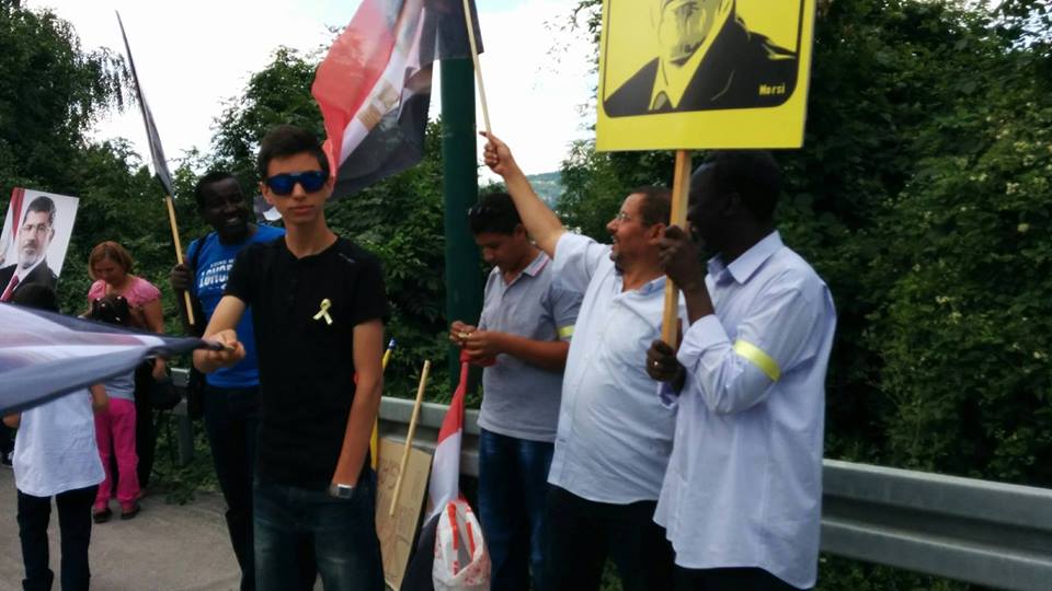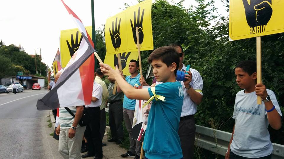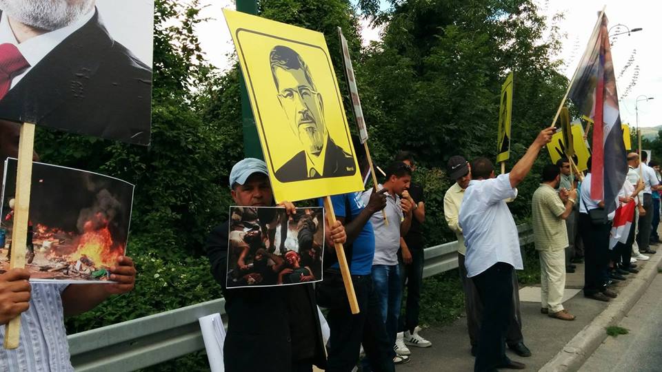 شارك عدد من المصريين والفلسطينين البوسنيين في تنظيم وقفة أمام السفارة المصرية في العاصمة البوسنية "بسراييفو"، إحياءاً لذكرى مرور عام علي فض أمن الانقلاب لميداني "رابعة" و"النهضة" بـ"مصر"، حاملين شارات "رابعة"، وأعلام "مصر"، وسط تواجد كبير للمثلي منظمات المجتمع المدني .