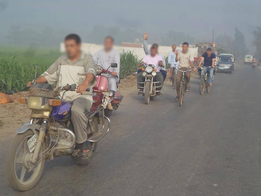 ومن جانبه، أقام أهالي قرية "ميت أبوخالد"، مسيرة بالدراجات البخارية، مطالبين خلالها بمحاكمة قادة الانقلاب العسكري، فيما لاقت الفعالية تفاعلا ملحوظا من الأهالي والمارة، الذين لوحوا بشارت "راعبة" للمشاركين .