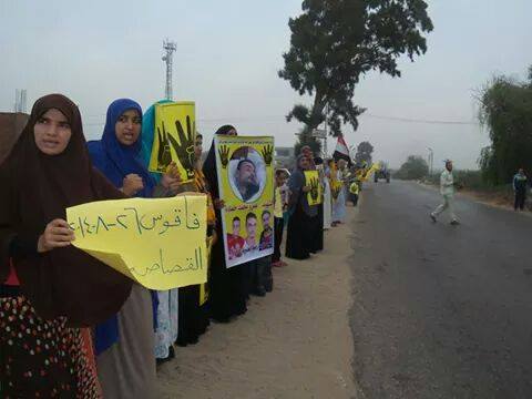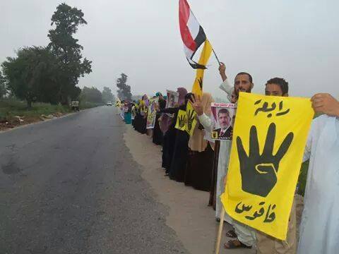 نظم أهالي "فاقوس" بالشرقية سلسلة بشرية، اليوم الثلاثاء إستجابةً لدعوة "التحالف الوطني لدعم الشرعية ورفض الانقلاب"، في أسبوع "القصاص مطلبنا"، حمل المشاركون خلالها صورًا للرئيس الشرعي "محمد مرسي"، رافعين شارات "رابعة".
