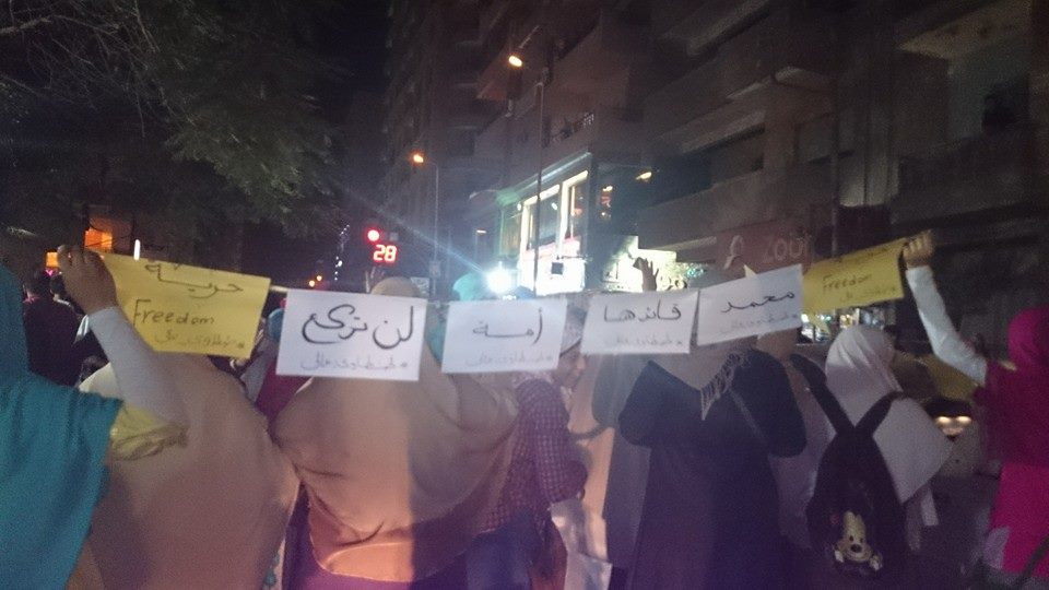 وهتف المتظاهرون لغزة واصفينها برمز العزة، كما نددوا بتواطئ سلطات الانقلاب مع الاحتلال الصهيوني في عدوانه على غزة.