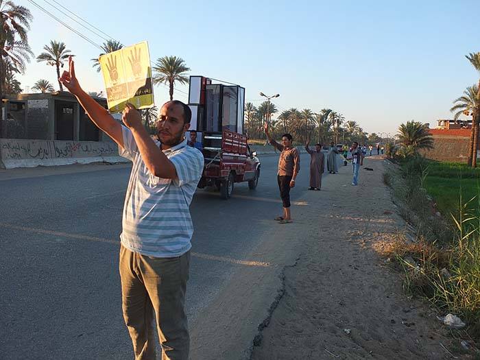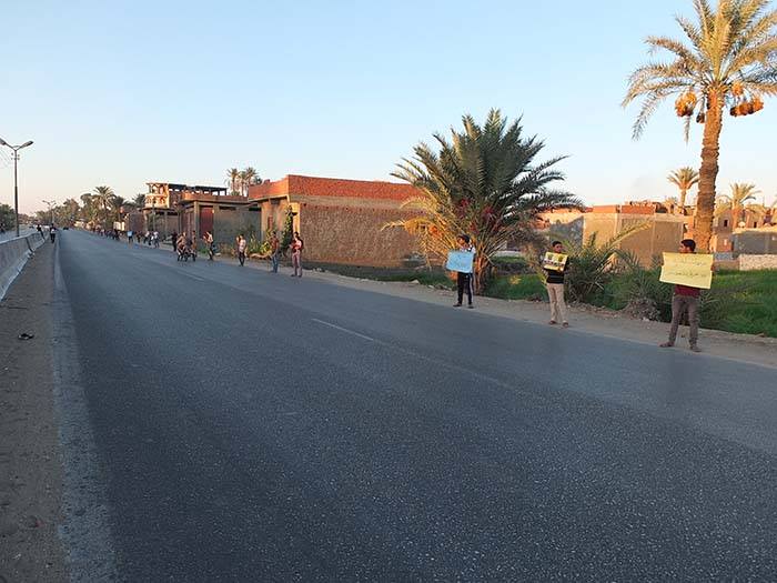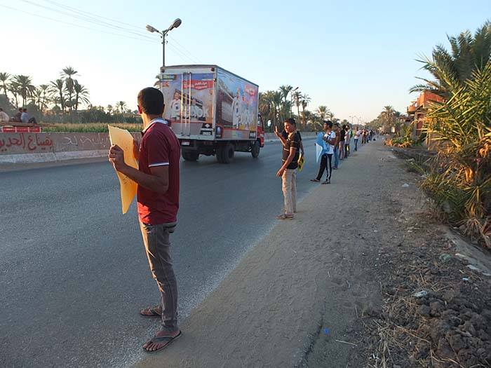 نظم رافضو الانقلاب بالفيوم، سلسلة بشرية، قبيل المغرب من اليوم الخميس، على طريق "الفيوم – القاهرة" الصحرواي، امتدت السلسلة لأكثر من 3 كيلو متر، وسط مشاركة واسعة للحركات الشبابية والثورية، ولحركة "نساء ضد الانقلاب".