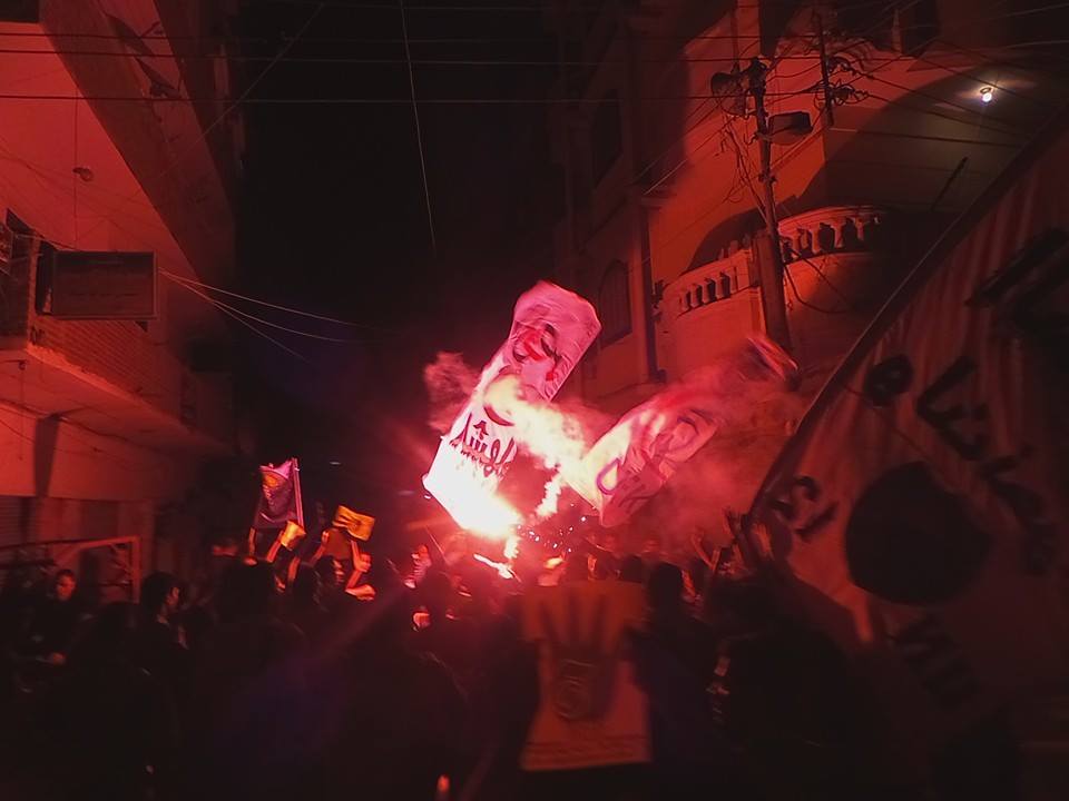 شهدت مدينة "كفر الدوار" بمحافظة البحيرة، مساء اليوم الخميس، مسيرة ليلية حاشدة، انطلقت فعالياتها من موقف "الكارتات"، أسفل الكوبرى العلوى، وطافت أرجاء وشوارع المدينة، رفضًا للانقلاب العسكرى، وذلك بمشاركة "أولتراس نهضاوى"، و"أولتراس كفر الدوار"، وحركة "عفاريت ضد الانقلاب".