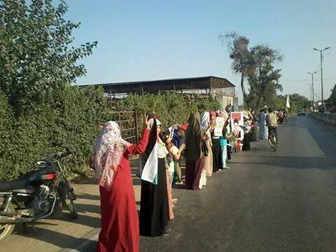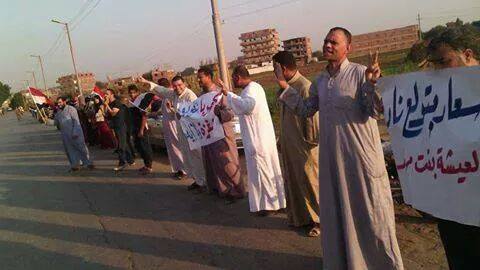 فيما شارك أهالي "الحلواصي" و "شعشاع" و "بوهة"، و"شوشاي" في سلسلة بشرية على طريق "أبو يوسف" بأشمون، رفع المشاركون خلالها لافتات تندد بالأوضاع الاقتصادية المتردية، التي آلت إليها مصر في ظل الحكم العسكري .
