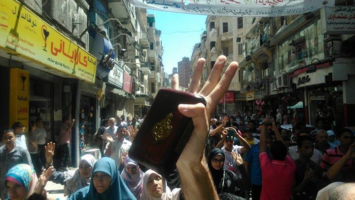 لم يترك مسيرة أو فعالية إلا شارك فيها حاملاً مصحفه الأحمر بيده فى كل الفاعليات وهو مصحف والدته- رحمها الله- رافعا معه شارة رابعة.