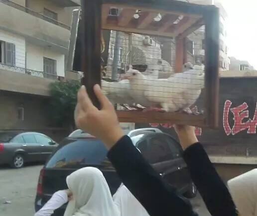 “الحمام” رمز للحرية في مسيرة بالمنصورة