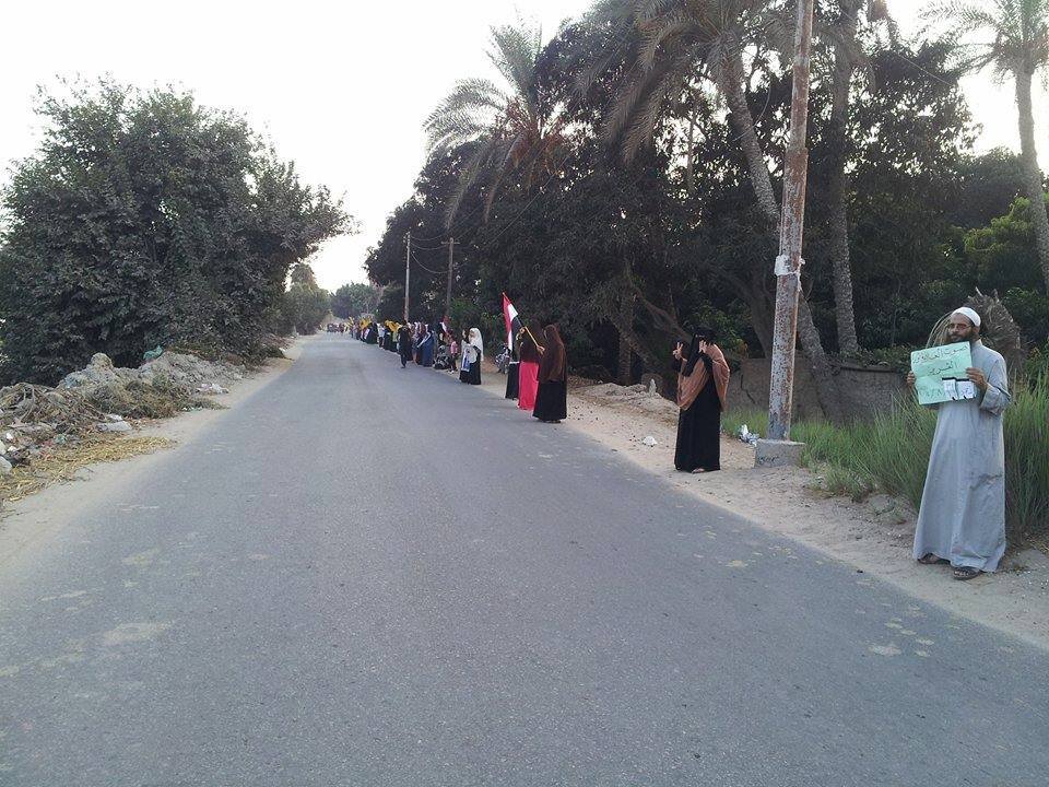نظمت حركة "نساء ضد الانقلاب"، بالتنسيق مع حركة "شباب ضد الانقلاب" بمحافظة الشرقية، سلسلة بشرية، عصر اليوم الأحد، على طريق "نبتيت – مشتول السوق"، رفعوا خلالها شارات رابعة، وأعلام مصر، منددين بالأزمات الاقتصادية، وغلاء الأسعار، فضلاً عن انقطاع الكهرباء المتكرر.