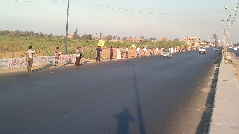 نظم أهالي مركز "أبوحمص" بالبحيرة، سلسلة بشرية على الطريق الزراعي "القاهرة – الإسكندرية"، عصر اليوم الإثنين، بمشاركة لحركتي "عفاريت ضد الانقلاب"، و"شباب ضد الانقلاب"، رفع المشاركون خلالها شارات رابعة، وأعلام مصر.