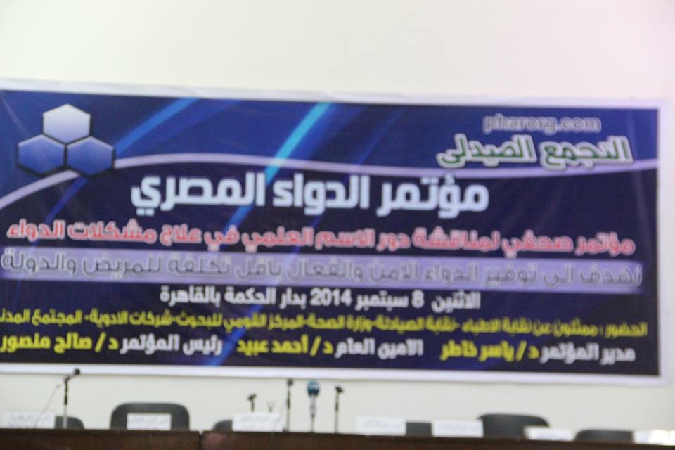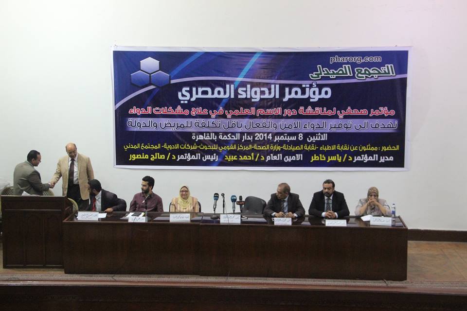 نظم "التجمع الصيدلي المصري"، مؤتمرًا صحفيًا تحت عنوان "الدواء المصري"؛ بغرض مناقشة مشاكل المنظومة الدوائية، ودور كتابة الأدوية بالاسم العلمي في علاجها، وذلك بمقر دار الحكمة، في تمام الساعة الواحدة ظهرًا