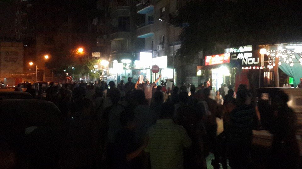 ردد المشاركون هتافات مثل "الدنيا ضلمة .. يا حكومة ظالمة" و"واحد اتنين.. الكهرباء فين".