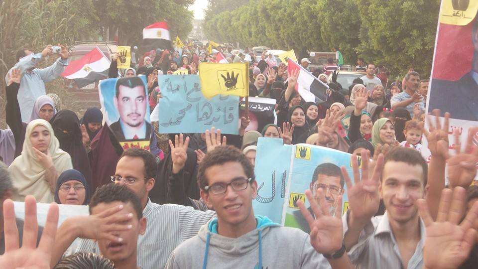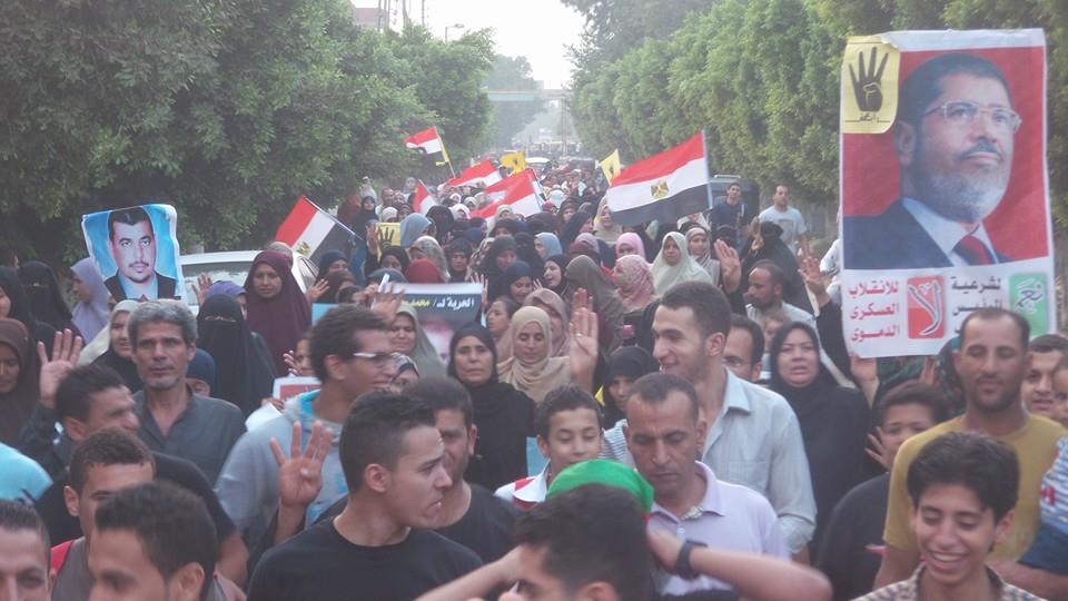 نظم رافضو الانقلاب العسكري في قرية العدوة بمحافظة الشرقية، مسقط رأس الرئيس محمد مرسي، سلسلة بشرية، أعقبها مسيرة حاشدة جابت أرجاء القرية.