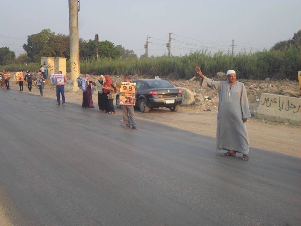 ومن جانبها، نظمت حركة "شباب ضد الانقلاب" بالتنسيق مع "نساء ضد الانقلاب"بكفر الزيات، سلسلة بشرية على طريق "مصر-أسكندرية الزراعي"، حملوا خلالها شارات رابعة، وأعلام مصر، فيما نددوا بالأوضاع الاقتصادية المتردية وغلاء الأسعار.