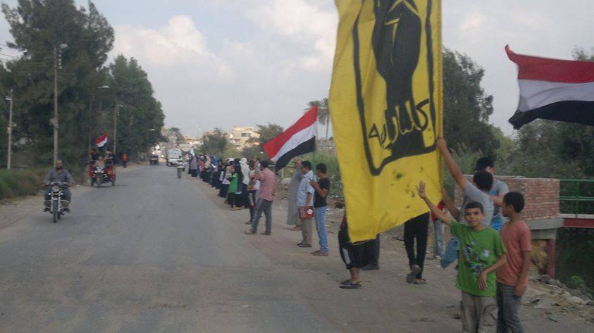 وفي مدينة "كفر صقر"، نظم رافضو حكم العسكر سلسلة بشرية على طريق "كفر صقر – أبوكبير"، وأخرى بمدينة أولاد صقر، على امتداد الطريق. ورفع المشاركون خلالها شارات رابعة، وأعلام مصر.