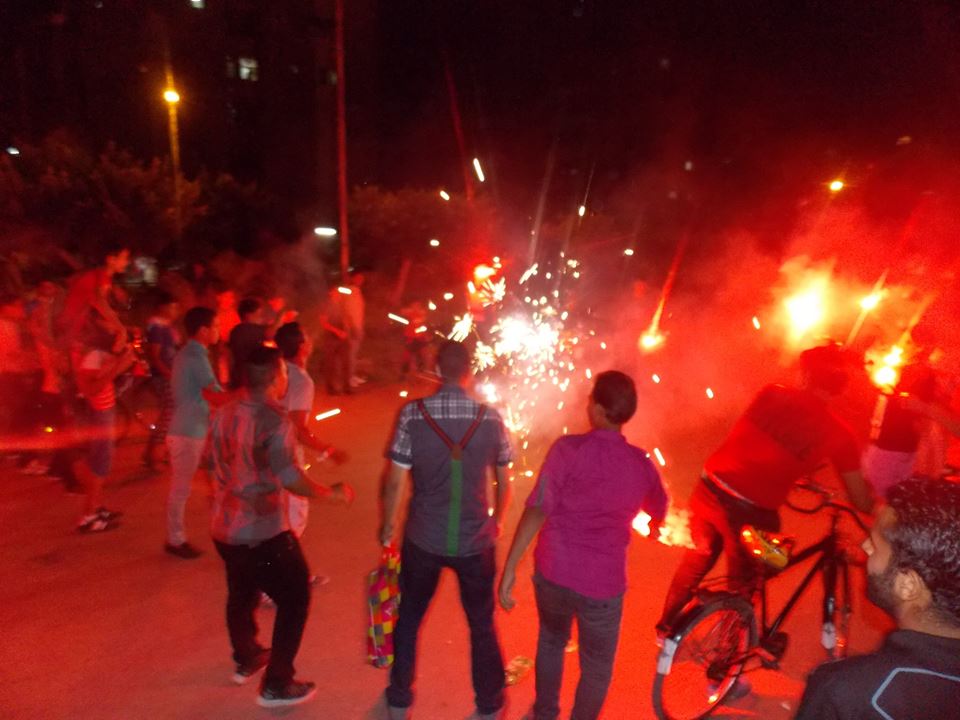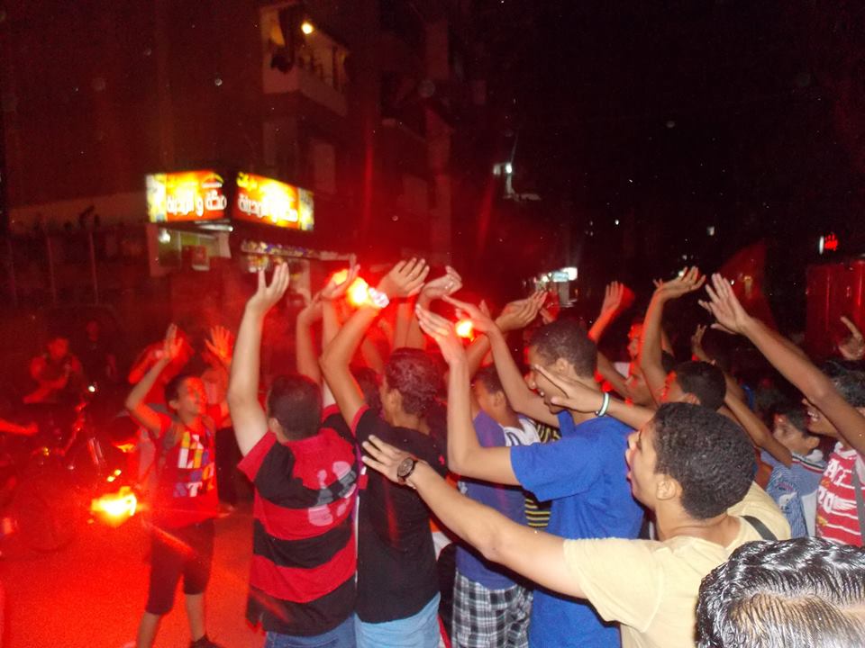 كما أطلق المشاركون الألعاب النارية والشماريخ، فيما تفاعل معهم الأهالي، والذين لوحوا للمشاركين بشارات رابعة.