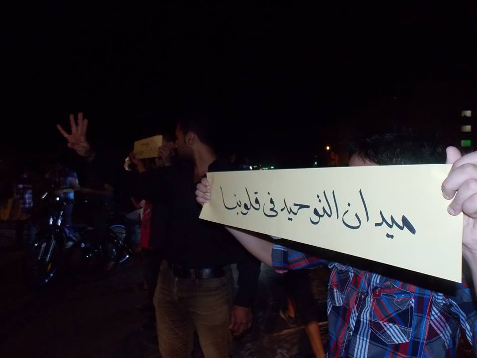 وفي نفس السياق، انطلقت مسيرة من أمام مسجد الصالحين، في ذكرى فض ميدان التوحيد، والذي أستشهد خلاله، محمد القزاز، وأصيب أخرون.