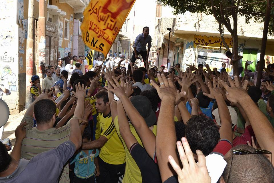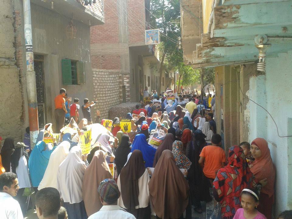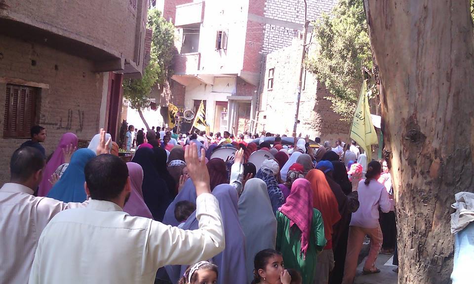 ومن ناحية أخرى، نظم أهالي مركز "ببا" مسيرة حاشدة، خرجت من أمام قرية القرامنة، لتجوب شوارعها وتجوب شوارع قرية "أم الجنازير"طالب المشاركون خلالها بالقصاص لدماء الشهداء، وإسقاط الانقلاب العسكري.