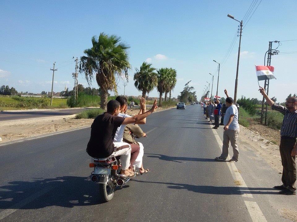 فيما نظمت حركة " شباب ضد الانقلاب"، سلسلةً بشريةً في "طلخا"، رفع المشاركون خلالها صورًا للرئيس الشرعي الدكتور "محمد مرسي"، مطالبين بعودته.