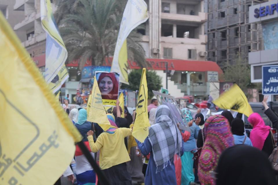 نظمت حركة "نساء ضد الانقلاب" بالقاهرة، مسيرةً حاشدةً في مدينة نصر، اليوم، تحت شعار "بنات مصر خط أحمر"، نددت المشاركات خلالها بالانتهاكات التي يتعرض لها الفتيات المعتقلات، مطالباتٍ بسرعة الإفراج عن كافة المعتقلات في سجون العسكر.
