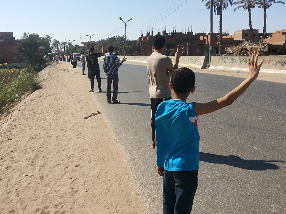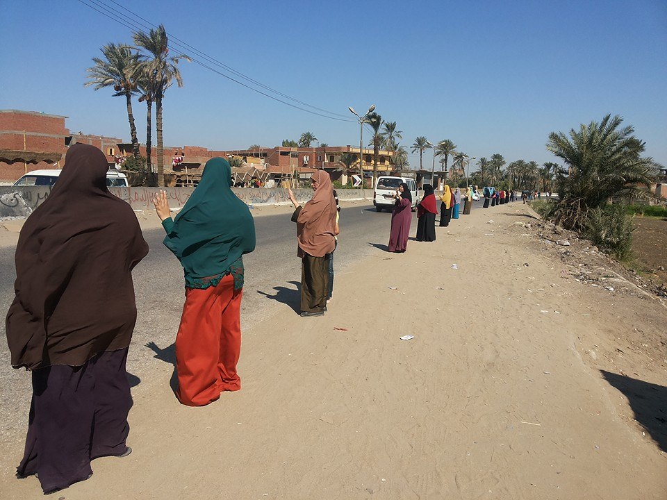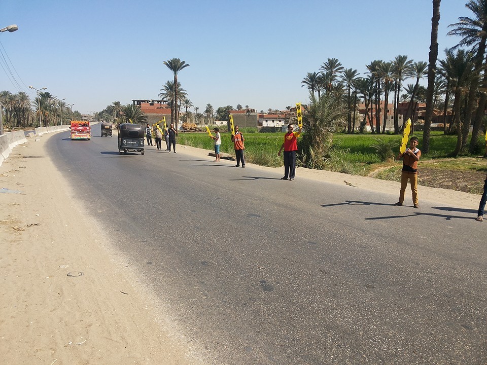 نظم أهالي قرية اﻷعلام بمركز الفيوم، صباح اليوم الاثنين، سلسلة بشرية على طريق (الفيوم – القاهرة) الصحراوي، في صبيحة انتفاضة السادس من أكتوبر في تحد واضح لداخلية الانقلاب العسكري.