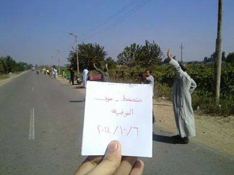 كما نظمت الحركات الشبابية بمنوف سلسلة بشرية أمام قرية صنصفط رافعين شارات رابعة ولافتات منددة بحكم العسكر، ومطالبين الجيش المصري بالعودة لحماية الحدود، ومؤكدين علي استكمال الثورة حتى النصر -حسب قولهم.