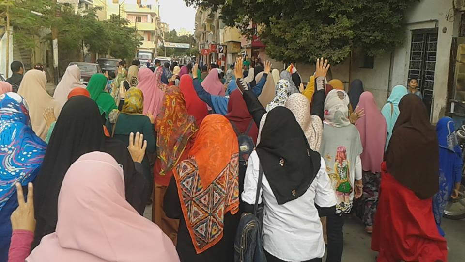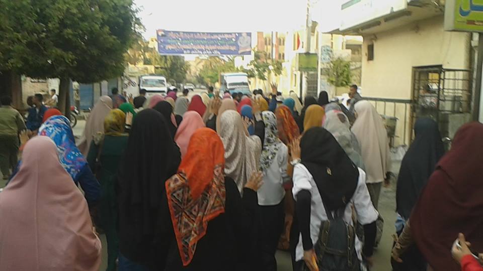 نظمت حركة "نساء ضد الانقلاب" في بني سويف، اليوم، مسيرة حاشدة في ذكرى مرور عام على استشهاد الطالبة "رفيدة سيف" برصاص أمن الانقلاب، أثناء مشاركتها في تظاهرة مناهضة للانقلاب بانتفاضة السادس من أكتوبر العام الماضي.