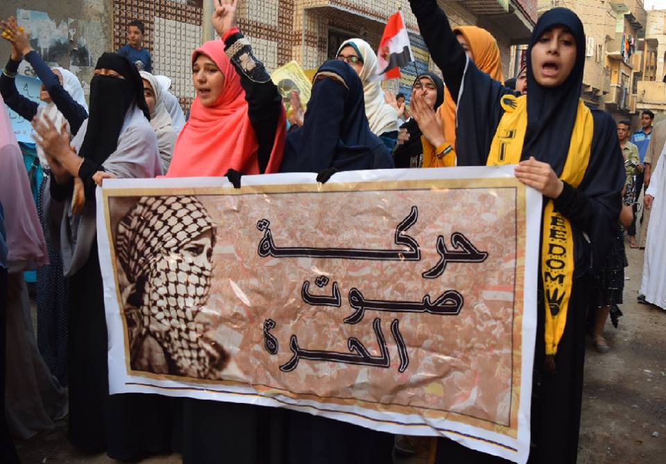 نظمت حركة "صوت الحرة" في مدينة منية النصر بالدقهلية، مسيرة مناهضة للانقلاب العسكري، وتنديدًا باستمرار اعتقال الفتيات: "منة، أبرار، يسرا"، وسط مشاركة كبيرة لحركة "شباب ضد الانقلاب".