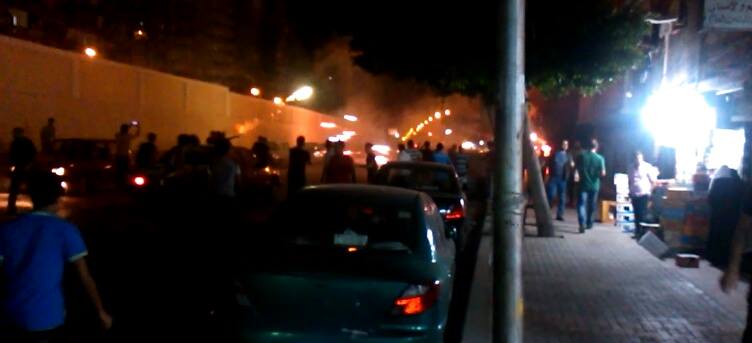 وعقب بدء المتظاهرين لفاعليتهم، قام أفراد من البلطجية بالاعتداء على المسيرة بالطوب والألعاب النارية والأسلحة البيضاء والعصي، ومن جانبه قام الشباب بالتصدي لهم بالألعاب النارية، فيما تفرق المتظاهرون في الشوارع الجانبية للمنطقة.
