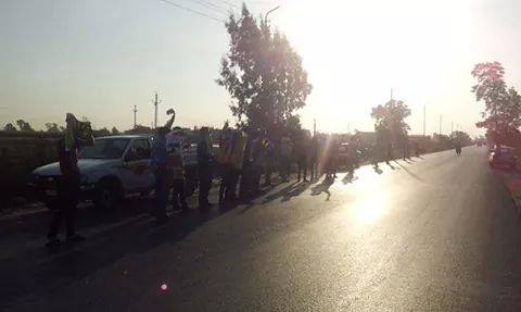 واحتشد المشاركون في السلسلة البشرية على طريق "دمنهور- شبراخيت"، حيث رفعوا شارات ورايات "رابعة"، وصورًا للرئيس "مرسي".
