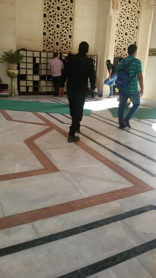 أفراد بزي الأمن المركزي  يتجولون داخل جامعة مصر للعلوم