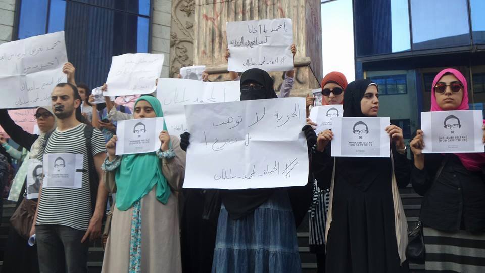 وكانت عائلة محمد سلطان، قد نشرت بيـانًا حول وضعه الصحي وما يتعرض له داخل المعتقل، ذكر أن هناك جرائم عدة ترتكب الآن في حق محمد سلطان وهي، الإطعام القسري أثناء النوم من خلال محاليل التغذية دون موافقة المضرب أو عائلته خلافا للقانون، وقسوة التعامل الأمني وكلبشته في السرير من يديه – لأول مرة – مع نزيف الدم الواضح جدًا فيهما.