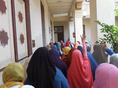 وتظاهرت طالبات "الدراسات الإسلامية" بدمنهور، في مسيرة حاشدة، طافت ساحة الكلية، وسط هتافات تطالب بالإفراج عن الطلاب المعتقلين.