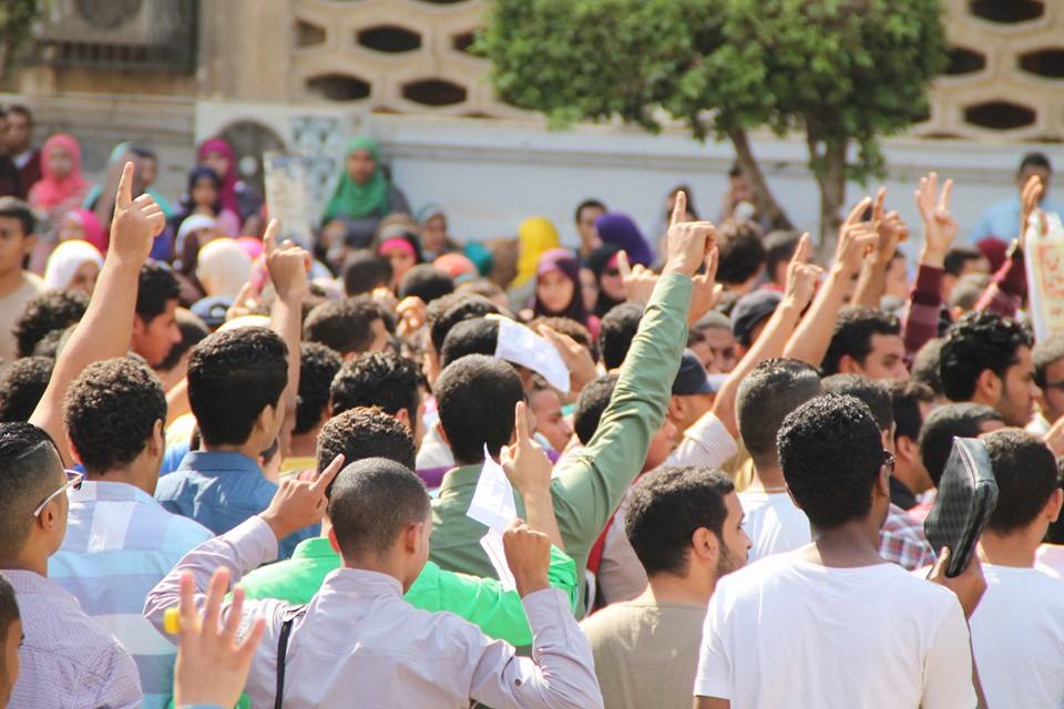 نظمت حركة "طلاب ضد الانقلاب" بجامعة القاهرة، مسيرة حاشدة، انطلقت، اليوم، من أمام كلية العلوم، لتطوف أنحاء الجامعة، وسط هتافات منددة بالقمع الأمني، والانتهاكات التي تمارس بحق الطلاب، كما طالبوا بالإفراج عن زملائهم المعتقلين في سجون العسكر.