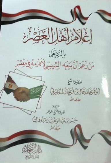تداول نشطاء بالتيار السلفي اليوم صورة غلاف وتفاصيل كتاب يتداول بين أبناء التيار، كتبه داعية سلفي يدعى جمال بن فريحان الحارثي، بالاشتراك مع قيادي في جماعة أنصار السنة في مصر يدعى حسن بن عبد الوهَّاب البنا، وكان الكتاب بعنوان "إعلام أهل العصر بالرد على من زعم أن بيعة السيسي لا تلزمه في مصر" من طباعة دار الصحابة السلفية بطنطا، وهو كتاب يدافع عن انقلاب عبد الفتاح السيسي، كما يؤكد أن السيسي – قائد الانقلاب العسكري – "ولي أمر شرعي" وفقا للفكر السلفي.