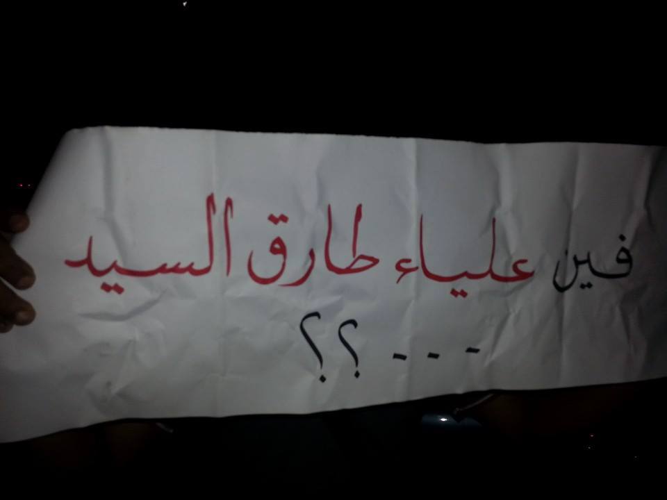 نظمت حركة "طلاب ضد الانقلاب"، تظاهرة مفاجئة، أمام منزل النائب العام، ردًا على اختطاف طالبة جامعة الأزهر "علياء السيد"، والتي لم يتمكن أهلها من التعرف على مكانها حتى الآن.