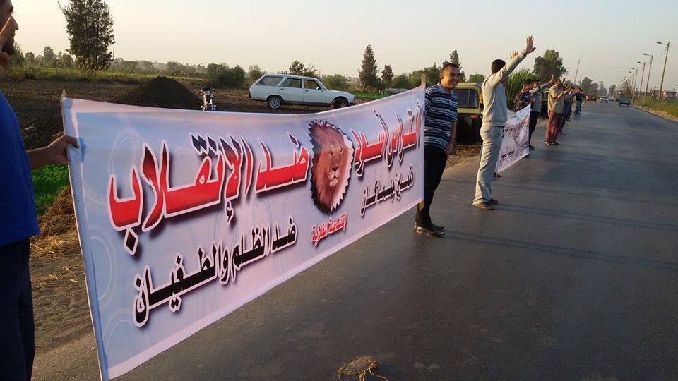 نظم "التحالف الوطنى لدعم الشرعية" في الدقهلية، سلسلة بشرية بقرية "ميت دمسيس" بمركز أجا، طالبوا فيها بسقوط حكم العسكر، ومحاكمة قادته.