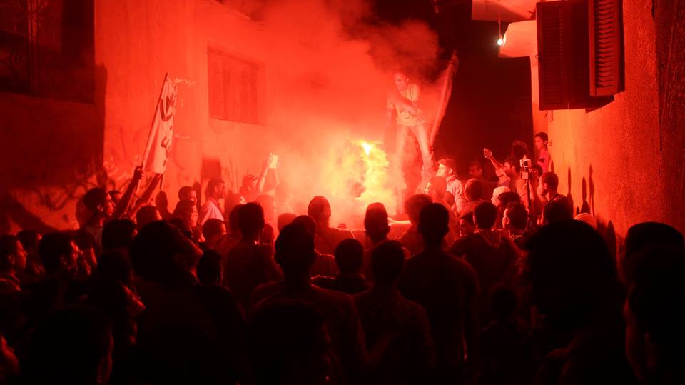 نظم أولتراس نهضاوى بمحافظة القليوبية، مسيرة ليلية حاشدة، اليوم، انطلقت من أمام المعهد الديني بعرب العليفات، التابعة لمركز الخانكة، للتنديد بالانتهاكات التي تمارسها داخلية الانقلاب بحق طلاب الجامعة.