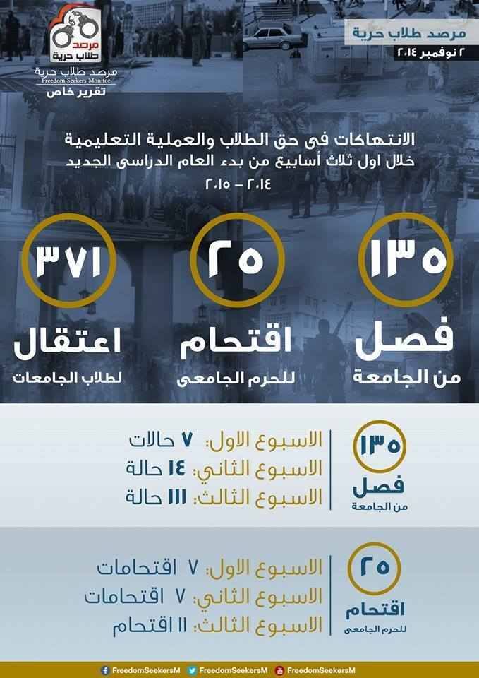كما رصد المرصد نحو 371 حالة اعتقال للطلاب في أول ثلاثة أسابيع من الدراسة.